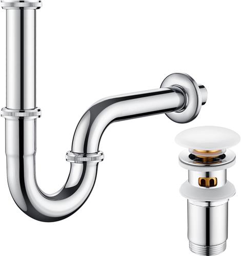 Auralum max Sifon Wastafel + keramiek Wastafel afvoerplug Met overloop - Universele Sifon 1 1/4'' Chroom - Universele Afvoergarnituren