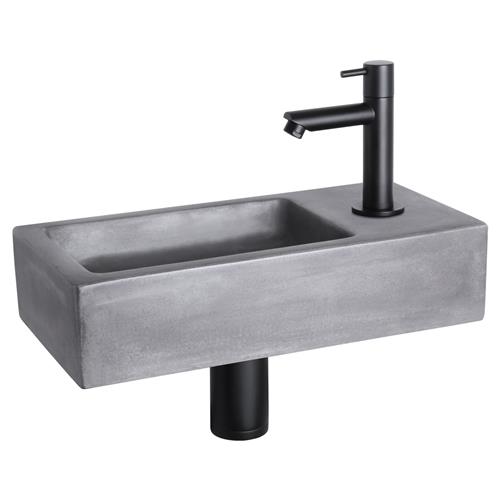 Differnz Ravo Fonteinset - Wasbak Beton - Donkergrijs - Rechte Kraan - Mat Zwart - Standaard Greep - 38.5 x 18.5 x 9 cm