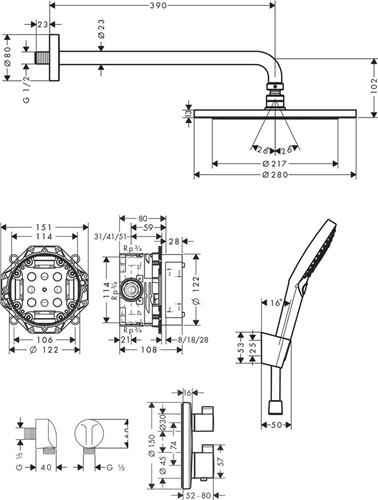 Controleer altijd voor aankoop de specificaties op de website van de webwinkel waar je hansgrohe Croma 280 1jet inbouw doucheset met Ecostat S mat zwart aankoopt
