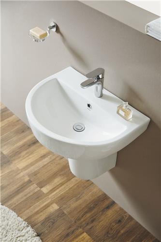 Breng elegantie en moderne klasse naar uw badkamer met de Sanifun wastafel Alvera. Met een afmeting van 600 x 450 mm is deze wastafel de perfecte toevoeging aan elke ruimte, van compact tot luxe. De strak halfronde vorm en de tijdloze witte keramiek maken het een veelzijdig meubel dat naadloos aansluit op diverse badkamerstijlen.