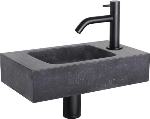 Differnz Fonteinset - Wasbak Natuursteen Bombai Black - Antraciet - Gebogen Kraan - Mat Zwart - Standaard Greep - 40 x 22 x 9 cm