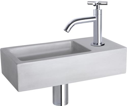 Differnz Ravo fonteinset - beton lichtgrijs - kraan gebogen kruis Chroom - 38.5 x 18.5 x 9 cm