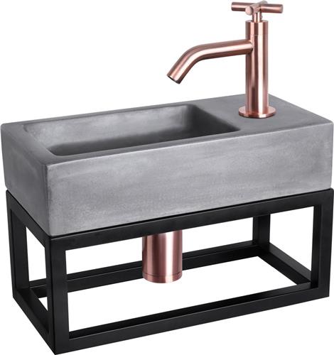 Differnz Ravo Fonteinset - Wasbak Beton - Donkergrijs - Gebogen Kraan - Rood Koper - Kruisgreep - 38.5 x 18.5 x 9 cm - Met Handdoekrek - Zwart