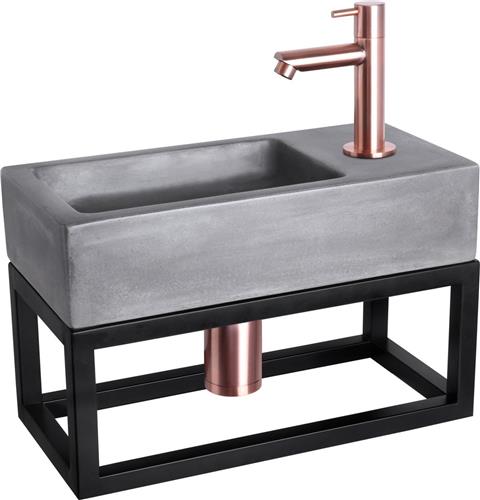 Differnz Ravo Fonteinset - Wasbak Beton - Donkergrijs - Rechte Kraan - Rood Koper - Standaard Greep - 38.5 x 18.5 x 9 cm - Met Handdoekrek - Zwart