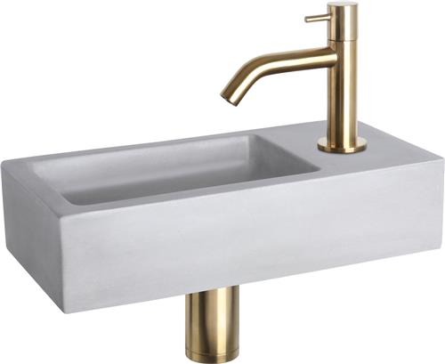 Differnz Ravo Fonteinset - Wasbak Beton - Lichtgrijs - Gebogen Kraan - Mat Goud - Standaard Greep - 38.5 x 18.5 x 9 cm