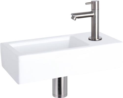 Differnz Ravo Fonteinset - Wasbak Keramiek - Wit - Rechte Kraan - Mat Chroom - Standaard Greep - 38.5 x 18.5 x 9.5 cm