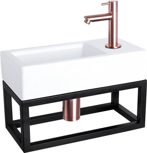 Differnz Ravo Fonteinset - Wasbak Keramiek - Wit - Rechte Kraan - Rood Koper - Standaard Greep - 38.5 x 18.5 x 9.5 cm - Met Handdoekrek - Zwart