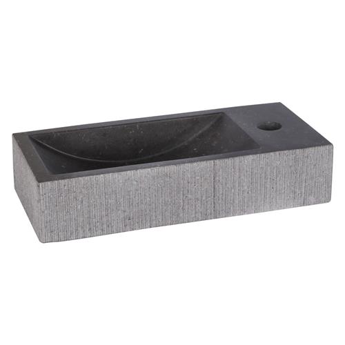 Dit natuurstenen wasbakje heeft een afmeting van 38x18x8 cm en is voorzien van één kraangat aan de rechterzijde. De unieke grove ribbels creëren een robuuster en eigentijdse look, waardoor het een opvallend element wordt in uw interieur. Het is niet alleen een oogverblindend stuk, maar ook een praktische oplossing voor het dagelijkse gebruik.
