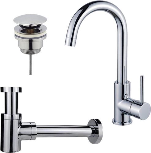 Laagste prijs € 255,99 voor Fortifura Calvi Wastafelkraanset - hoge wastafelkraan - draaibare uitloop - klikwaste plug - verlaagde design sifon - Chroom is gemeten op 11-12-2025.