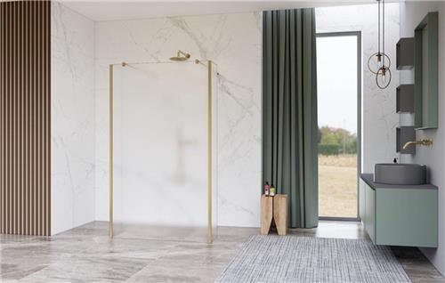 Laagste prijs € 443,39 voor Fortifura Galeria Vrijstaande Inloopdouche - 140x200cm - Glas mat - antikalk - 8mm veiligheidsglas - wandsteunen - Geborsteld Messing PVD (Goud) is gemeten op 09-11-2025.
