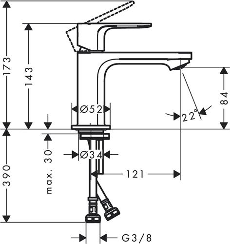 | Uitvoering wastafelkraan | Zonder waste of ketting |