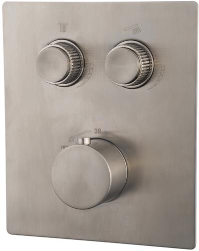 De Sanifun afbouwplaat Theo in geborsteld staal is een perfecte combinatie van functionaliteit en modern design. Deze stijlvol afgewerkte afbouwplaat is speciaal ontworpen voor gebruik met de Sanifun douchethermostaat Theo Duo. Met zijn tijdloze uitstraling past hij naadloos in elke moderne badkamer.